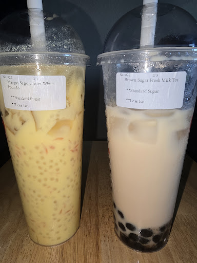 Read moreI absolutely love this place. The tea always tastes fresh, as well as the tapioca boba, and they have adorable hand made hair pieces. I have tried the Brown Sugar Fresh Milk tea, Mango Sago Cream White Pomelo, the Lychee Ice tea (not pictured), the Duck Pecan tea (not pictured), and the Dragon Well Tea with Fresh Milk Cream (pictured in Bamboo cup) and all have tasted so good. I wish I had taken a photo of the Dragon Well Tea before drinking it for everyone to get a full visual of how beautiful it looked, but I got to excited about trying it. I cant wait try their other tea options and hope to try their food (Hot snack)...