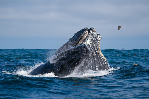 I have seen so many whales with Pacific Offshore to even keep track of including: gray whales, blue whales, humpbacks, minke, fin, Brydeâs whales. Along with common dolphins, pacific white sides dolphins, Bottlenose dolphins, Rissoâs dolphins, flying fish, fur seals, sea lions, mola mola, blue sharks and all the marine life in the water and air you can imagine. Oh I canât forget OCâs favorite dolphin star, Patches, the leucistic bottlenose dolphin! He has the most unique coloring and is frequently seen in/around OC - look out for him! The whales & dolphins come right along the side of the boat sometimes and being at water level right next to them is magical!