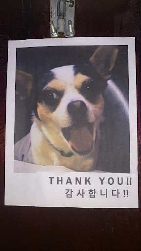 The dog there is quite literally everywhere, being the face of the business and all. We were very amused seeing him everywhere we went, even on the bathroom walls. We were so happy seeing him sitting behind the counter, and he barks whenever a customer is at the counter for the workers to know service is needed.