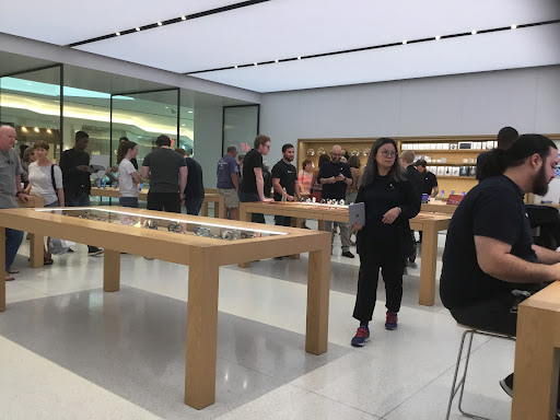 Read moreThe Apple Store at the Gardens Mall has a terrible atmosphere. The noise level prohibits clear thinking. Is that your intention, Apple? I hate going in that store and I just bought my third iPhone. The electronic buzz from the people and apparatuses,without any dampening, is very disturbing to my hearing. I am a 67 yo woman. The employees seem to be welcoming, but also seem too robotic. The protocol is difficult to grasp, especially for first time users. One enters, is greeted by one of the many blue people and then directed to another blue person to set up an appointment to talk to a third person. Why couldn't I have done this online, outside of the store? Then my appointment was in one hour. So I had to twiddle my thumbs. I went to the AT&T store and got the iPhone problem fixed there, and then I bought my new iPhone 6 there. Meanwhile I tried to cancel my appointment via text messages with the ha ha Genius Bar but it appears not to take messages. It only can send messages. "Your appointment is soon." "Your appointment is now". Please cancel. "We cannot hold your appointment. We are giving your time slot to someone else."