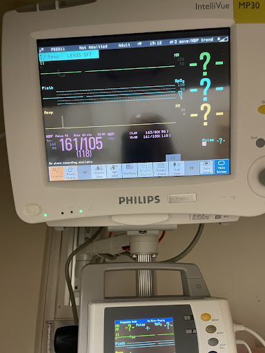 I checked in with John at the ER front desk. He handled this like the concierge at The Breakers: friendly and efficient, he ushered me in to meet Laura and Valerie, who calmly took vitals, inserted my first needle, and made me feel welcome. From there, I was brought to my ER suite under the watchful eye of Brooks, and the parade began in earnest: Dr. Ahmed, Internist, whose demeanor would become my daily balm of calm. Georgia and Leslie from Dr. Patel's staff, with lots of questions and the brief overview of what's to come. Next an x-ray machine on wheels, then Schaefler wheeling me for more scans, and deftly maneuvered me up to room 360. Got me there at shift change, where Claudia welcomed Rochelle, who's super pleasant. Eerie interruption at 4:30 a.m. from a lady monitoring the hearts of all the patients on the floor. Evidently my heart stopped for 5 seconds, precipitating my move to CVICU that morning.