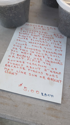 Going to the market on Sundays is a really nice experience. I recommend going early and buying something (a pastry, some coffee, some produce or fresh eggs, whatever) to support having this kind of thing in our community. Have a seat in the shade and listen to whatever live musician is playing that week. Get some steps in if that's your thing. I'm happy to see that it's grown since Covid and I hope we all continue to support it. I MUST add that you should stop by and see the plant guy, Ron. He is in his 80s, is VERY knowledgeable about plants, and is just the sweetest man. He really is a treasure. He doesn't have any signage, just a few tables with different plants that he grows himself, and the most amazing natural fertilizers you will ever buy! He has his name and phone number taped to a table so you can call him with your plant questions, free of charge. His prices are also really reasonable. The plants in my photo are dwarf angel trumpets. I have never seen the dwarf variety anywhere. Very...