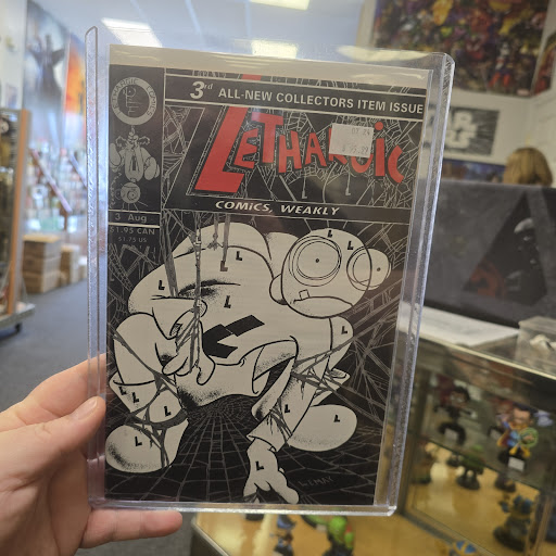 There is a great selection of books here, there may be a little bit of inflated pricing left over from the pandemic when everything was high, but we were still able to pull a few gems. There was a great selection of inventory, which is on shelves like a library so you basically grab a short box at a time walk it over to an end cap of an aisle and go through it there. The place was very clean and organized. We discovered a new artist, Tim Tyler, who had several sketch covers he had drawn being represented in one of the glass cases. We ended up purchasing all of those. They have wall books that wrap the entire showroom floor and they are all in top loaders, guarded by a sign that says "ask for help" so you aren't supposed to touch them, but all of the prices are on the back of the books. I don't personally mind asking for a price, but it can get annoying if you want to know the price of several wall books. I would suggest putting the prices on the front of the wall books, I promise you you will see an uptick of sales when people don't have to ask what the price is.