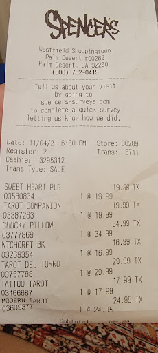 Read moreAlthough I love Spencer’s, this location has horrible customer service. My sister was kneeling down looking at jewelry. They had a deal on jewelry, so she was picking a few pieces. Some entitled teenager walked by and mutter something about her being in the way, then walked off. A few moments later she returned with an employee. He said excuse me, so my sister politely stood up to move, thinking they just wanted to grab something. The employee and entitled brat started to look through the jewelry! I get that there are entitled people in this world, but this employee shouldn’t have fostered it. He should have politely told her to wait her turn. When we mentioned that it was rude, the customer and employee, who were seemingly “friendly” with one another, laughed mockingly. We obviously put our intended purchases back and left, with no intent to return.