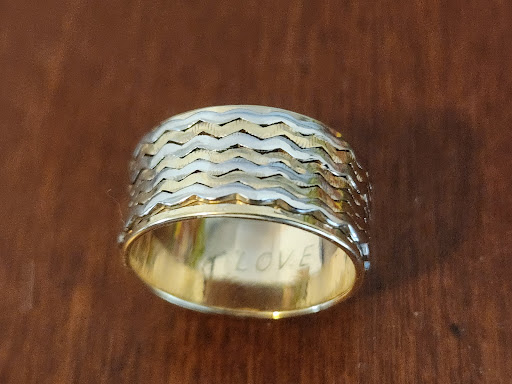 Meeting with Rob, the jeweler responsible for crafting my 25th wedding anniversary gift, was equally remarkable. He took the time to understand my lifestyle (including how hard I am on my jewelry!) and conducted extensive research to bring my vision to life. His CAD artistry was truly impressive, transforming my idea into a design that exceeded expectations. To ensure the ring felt like a family heirloom rather than a wedding ring, he set my grandmotherâs diamond low, adding to its unique symbolism. Inspired by the themes of Independence Day, this ring represents love, perseverance, and the unwavering belief that even in the face of adversity, love prevails.
