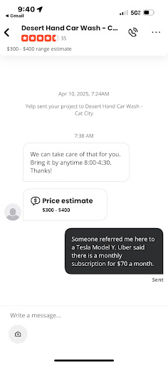 Read moreI recently got a ride from an Uber driver who mentioned that Desert Hand Car Wash offers a $70 monthly subscription for unlimited hand washing and cleaning. That sounded like a great deal at first — but when I checked the actual service and pricing listed, there was a major disconnect.