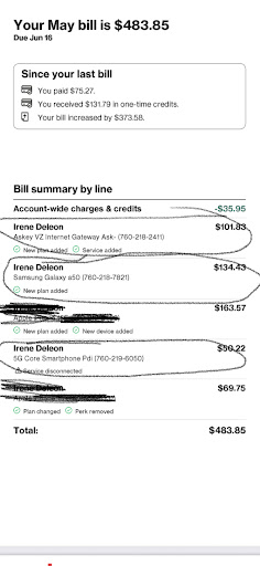 Read moreA month ago my husband and I went to get a him a new phone during the process of adding the new phone to the account we were told that if we added a third line it would make my bill cheaper I thought was a good idea I accepted but had no device to add nor purchased one in store other than my husbands iPhone n then was convince to get internet as well since it would be cheaper than the company I had, Verizon internet $35monthly seem like a deal to me so I payed the one time payment for the Internet modem in store$101.83. Then when my bill came around to pay and was set for auto pay I was charged $485 come to find out the gentlemen who helped us added a Samsung device to the third line which we did not purchase and was charge $138 and he added a fourth line that was a personal line that was $50.22 and was charged again $101.83 for the internet which I was told I would be charge $35 for the monthly internet I’ve been trying to take care of this for a few weeks with customer service and finally today i got it situated got those two lines disconnected, I will not be returning to this...