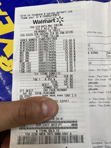 Read moreHorrible service. Was told 45 minutes to an hour for replacing 4 tires which ended up being 1 hour 47 minutes. At least it’s done and I’m not sweating it, right? WRONG! 1 stripped lug nut and 1 missing lug nut later, I quickly realized the mistake of trusting Walmart employees. Currently getting it taking care of with management but it’s been 3 hours at this point and who knows how much longer until we agree on the damages. Even then, that will be paperwork. Steer clear and avoid the headache. If you buy tires here, pay some rando tire shop to install. Worth the few extra bucks to save the time...