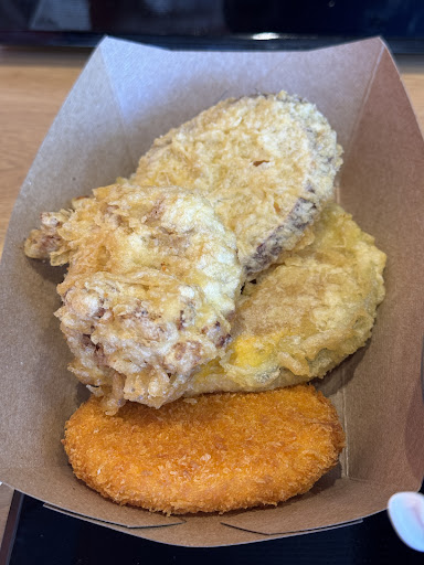 Obs: You first order the bowl you want. Second, you are asked if you want scallions and crunchy fried tempura batter (both free, and you can ask for extra scallions). Third, you slide your tray and get some tempura shrimp, octopus, vegetables, etc, of your choice (each has a different price), then you pay....
