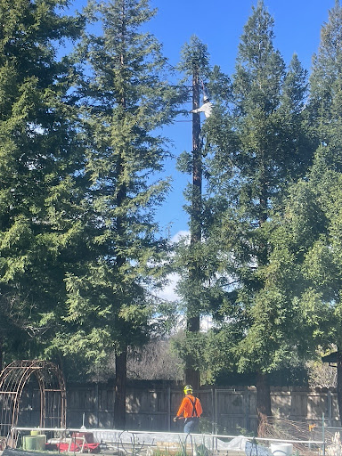 I just moved out of Trinity County where I knew a man who would ice-cream-cone a 200-foot fir for $35/hour, so Nick's quote seemed way pricey, but this is a different world down here. And the price included however many people it takes to safely work the ground ropes and haul away the slash.