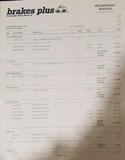 I started going to Breaks Plus in Papillion because it was close to my residence. The first couple of times went ok. They did what I needed done . It all went downhill after that. I took my car in for breaks ended up with a new rack and pinion . Others thought mgs started acting up with my car. I took it back to them and they fixed it and I would have another problem a few days later. I figured it was an older car and stuff just needed replaced⌠5 k later my car isnât running correctly they tell me I need a new engine. I took my car to get checked out by another mechanic and found they had broke my air intake valve and instead of telling me they rigged it with some random pieces they had in the shop⌠I went back to Breaks Plus to show them the part that had been rigged and the manager agreed his workers did in fact use a part in the shop to rig it. I was furious and asked them how are they going to make this right?⌠No answer⌠I said I want some of my money back because obviously your people made repairs that werenât even needed and to make it worse were breaking other parts and rigging them without my knowledge. The nerve of these people to lie about thousands of dollars in repairs and then to wreck a major part that runs the car and then tell me I need a new engine. My car is running great now that I got it out of their hands . I really donât understand why they would take me for thousands of dollars and never make what they did right?⌠What kind of business is this?⌠I would stay away from Breaks Plus in Papillion because they do not know what they are taking about and will break stuff to fix it incorrectly. My next step is the Better Business Bureau because I donât want anyone else getting ripped off by these incompetent hustlers. Keep in mind I was a valued customer for 7 years and this is how they âvalue â you. STAY AWAY OR GET RIPPED OFF!âŚ! UGH!⌠Terrible mechanics and management NOTHING WAS EVER DONE TO MAKE ANYTHING RIGHT!⌠I still a have the piece they rigged and a recording of Jalynn the manager admitting it was rigged with extra plastic pieces they have in their shop. Keep receipts and take recordings to cover yourself. Get an attorney because they will Not compensate you at all for their lies and mistakes. The grand total they swindled out of me was over 8k. RUN!⌠THEY ARE...