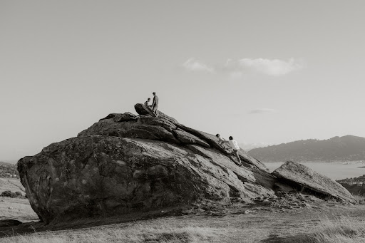 A giant boulder on top of a prominent hill with nearly panoramic views of the Bay Area. You can see the San Francisco skyline, the towers of the Golden Gate Bridge, Sausalito, Mt. Tam, even Mt. Diablo. There are technical rock climbing routes on one side and an easy scramble to the top on the other.