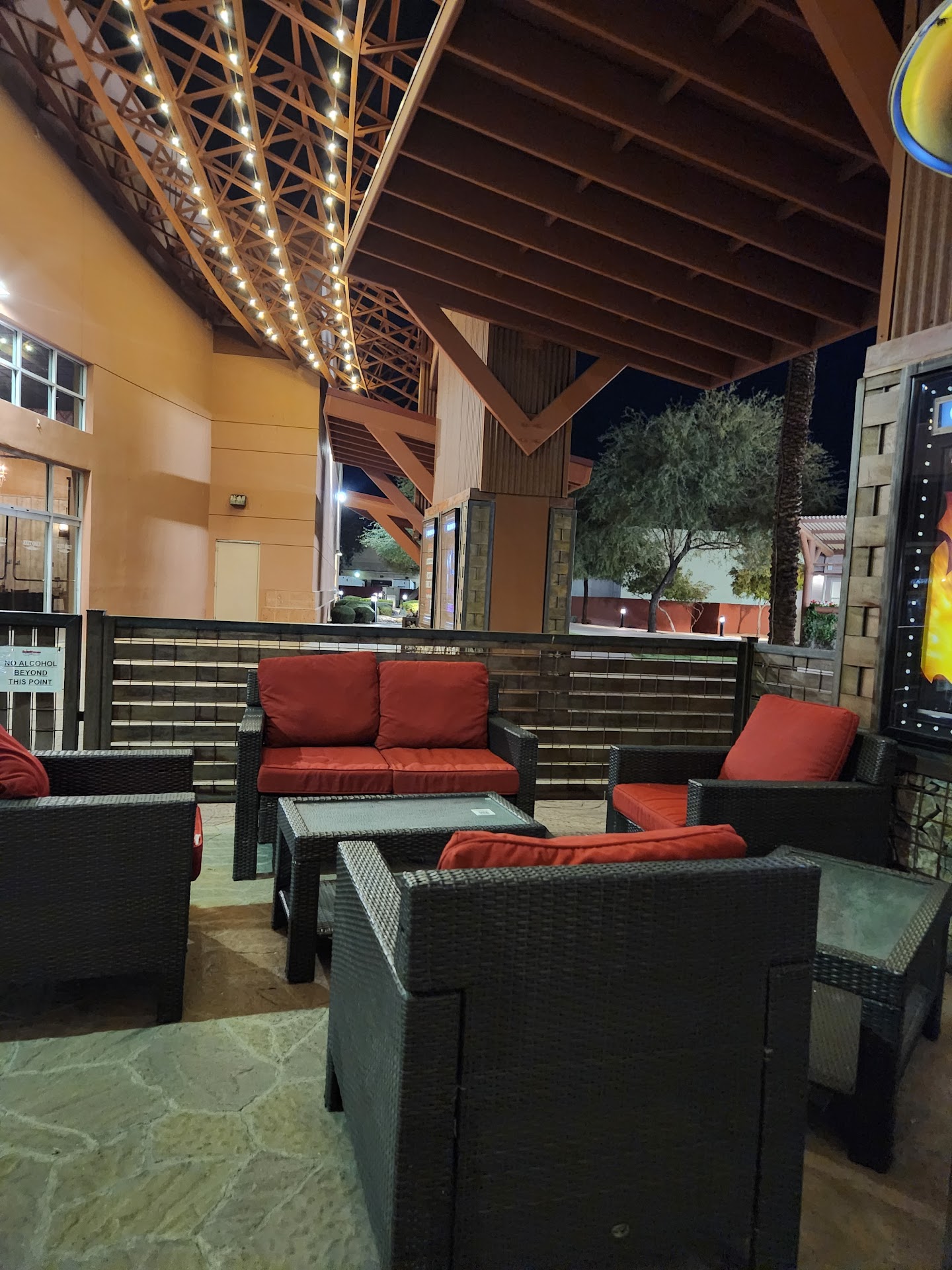 The screen was in great condition, we were in the back row and could easily see the entire screen even with sinking into the seats! The sound was awesome, definitely surround sound making an immersive experience. I also liked the ambience of the theater. You can just go eat there or have happy hour, no movie. You can have a movie with no meal. You can order gelato when you come in. You can come early or stay late. It was Saturday night so there was live music. The bathrooms were very large and clean. It looks like thereâs only one menâs and one womenâs but despite a movie just getting out there were still plenty of stalls in the womenâsâamazing. We went to see Indiana Jones and there was a cool selfie station set up in an Indiana Jones adventure style. There were lots of staff and as I walked by the kitchen to the restrooms, the staff was busy but not loud which was nice. There was a good vibe through the whole place, not stressed or loud/crazy. Will be...
