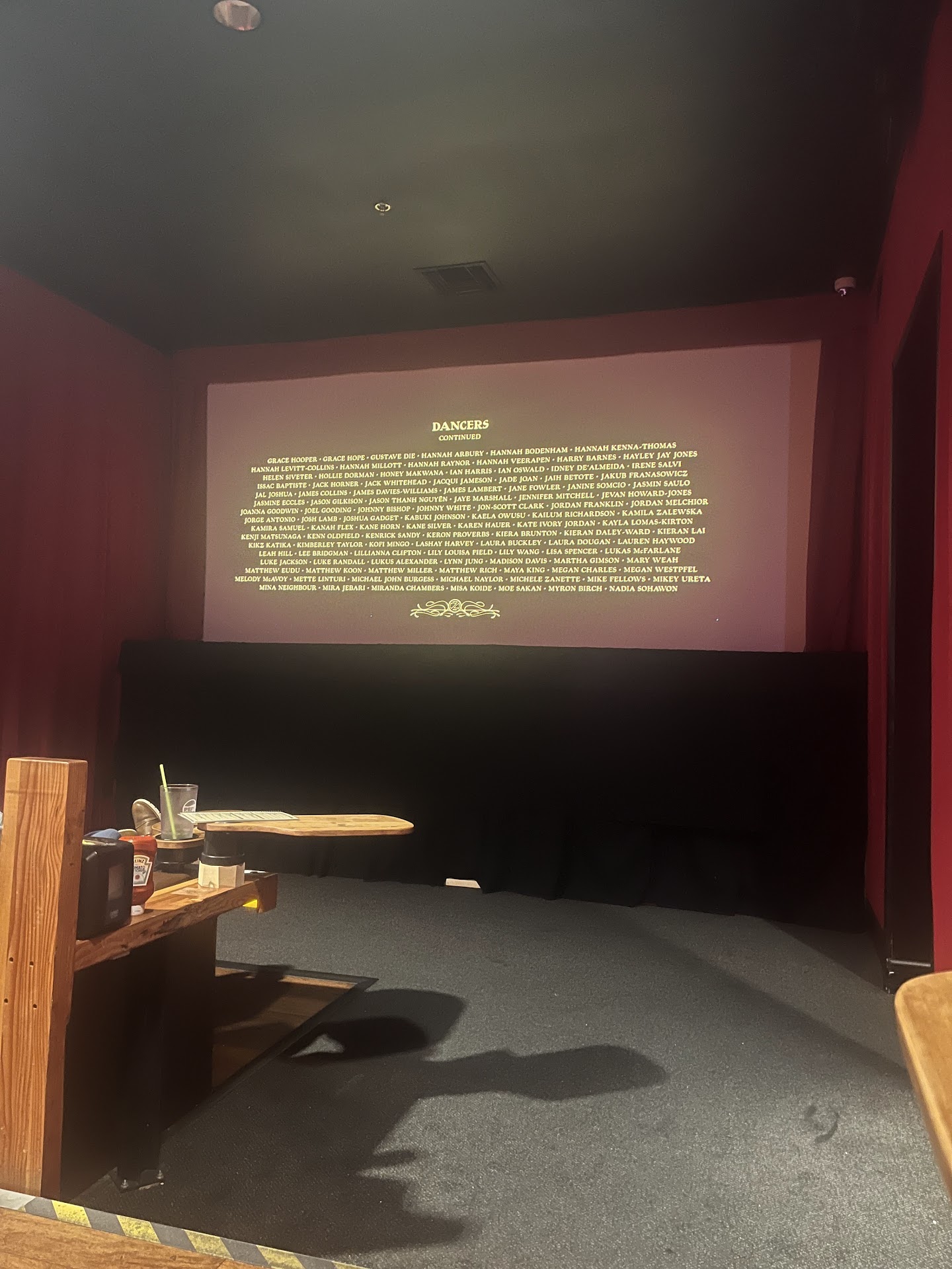 One server in the theater kneeled out of the way; all the others just stand directly in front of you, blocking the screen. The amount of time it took to get our order was incredible, and we only ordered two drinks and popcorn. We also got food at the bar after the movie, and it took a while to get our first round of drinks and even longer to cash out at the end. Now, I'm not blaming the bartender at all; this falls on scheduling and management for sure. You could tell she was the one making all the drinks for the screens and the entire restaurant area. Management needs to do better about supporting the staff.