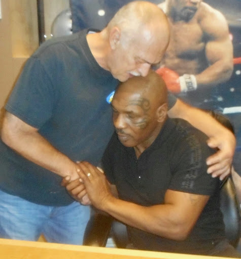 Field Of Dreams is a fabulous store the moment you walk in, and if you are a fan of boxing greats, football greats and awesome players of any sport you will find it a pleasure to spend time there. If you're rich you can find something very unique, original and expensive, and if you're not, there is plenty to see, shop for and buy at reasonable prices. There's a back room, and a winding staircase that goes to another level, so there is much to explore and discover. Got myself a large framed shot of famous Green Bay lineman Forrest Gregg just covered with mud and laughing about it one time, they were happy to ship it to my house where it still hangs proudly at the entry. They have signings as well, you buy an item and then come back later to have it autographed by the star while a woman will take your picture with him if you give her your camera. Met Tyson there in 2017 on New Year's Eve and took the opportunity to show him some love. Unforgettable. And the photo I have from that night...