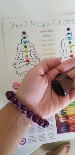 You come here to sit down and for $25 youāll receive a 10 minute-ish CHAKRA reading/snapshot of whatās going on there and then theyāll recommend stones for you to take into a meditation practice with you.