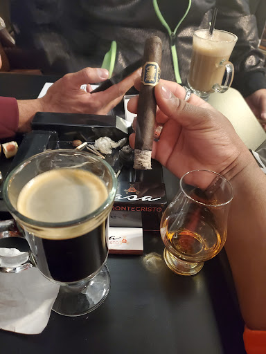 Read moreCasa De Montecristo is an awesome lounge. A truly splendid place to visit and smoke a nice stogie. It has a vast ammount of space with humidity regulating devices everywhere from floor to ceiling. This place is massive, with a hefty inventory of good smokes familiar to me and an even larger list of cigars I've only seen in pictures. Walking in from the parking lot, the welcoming aromas of cedar combined with cigars people were smoking and the coffee area at the bar made me and my friends want to stay and enjoy not just a cigar but a fashioned drink of any style of coffe or their fine selection of whiskeys & cocktails. The menu has a good # of selections. As you can see i splurged a bit, got me a Drew Estate Undercrown, a black coffee and some Basil Hayden's - neat (you know, to reset the pallate). This place was recommended to me by a good friend of mine. I will come back and I'll pair me a little something with an old fashioned. Man! My boy does not dissapoint.