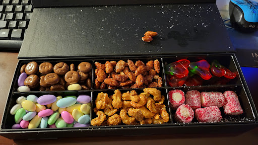 I love this store a lot. It's located on the first floor of the mall. There's so much variety and my go-to for one of my favorite snacks ever, Munchies Mix and BBQ Corn. Their tea is also yummy but a bit more expensive. They have a wide variety of nuts, snacks, dried fruits/veggies, chocolates, candies, teas, spices, and coffee, as well as other snacks and sweets. They also give you nice reusable tote bags with your purchases. All the products in the cases with the scoops are priced by weight. My only complaint is that you have to use the provided plastic baggies to take your goodies. I wish it was more friendly for people to bring their own reusable bags or that they provided more sustainable options. Also, keep in mind that if you mix different products in one bag, it can make pricing a little weird since each product is priced by weight and they discourage mixing different products with different prices in one bag. This also leads to more plastic baggie usage which I dislike. Other than that, the sheer variety and quality makes this one of my favorite go-to stores and I sincerely hope this location...