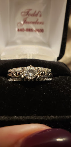 Read moreAfter years of hearing my significant other recommend and tell everyone about Todd Jewelers, we finally decided we were going to make an appointment with Todd in the hopes of purchasing my ring. After all, his family has been shopping with Todd for 35 years. Todd is a great, down to earth guy who gives genuine expert opinion on creating a piece of art. He is so knowledgeable! We were immediately comfortable with Todd and his staff and the entire experience. There was no pressure whatsoever which was a relief because it seems everything is high pressure sales anymore. I told Todd what I liked and what I did not like. I asked a lot of questions which he answered honestly. I am thankful for his honesty (and appreciate it) so we didn't end up with a ring that was not quality and one that wouldn't last a lifetime. Our main objective was to use a Great Aunt's main diamond from her setting. Todd created a unique and one of a kind creation based on our discussions. We went in for a mock-up and a little less than a month later we had our ring, MY ring. The ring is absolutely beautiful and stunning. It is unique and absolutely gorgeous! The diamond looks better than what we envisioned and its radiance definitely shines through. It means so much to have a ring that is now a family heirloom. And it is all thanks to Todd. After years of pondering, waiting, and patience, we now have a beautiful and distinctive piece of jewelry. It was an amazing experience! The picture that I attached does not give the ring the justice it deserves. To see it sparkle in the sun is magnificent! We will continue to purchase our jewelry from...
