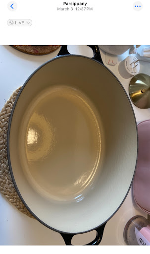 Purchased a pot at Homegoods around closing time on March 2. It was regular price even though it had a chip, which I already saw before purchase. I took a photo of the lid and pot in the day time of March 3.