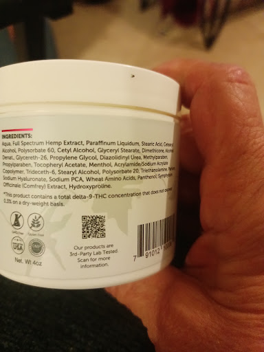 Read moreIf you have any kind of pain you have to get this. I walked in limping and knee hurting so bad. He said, "Where is your pain?" He handed me a jar and told me to go to the restroom and apply it every where I was hurting. I applied it and immediately I stopped hurting. It's pricey but I couldn't walk out the door knowing that that jar of cream that took me out of pain that fast was not coming with me so...