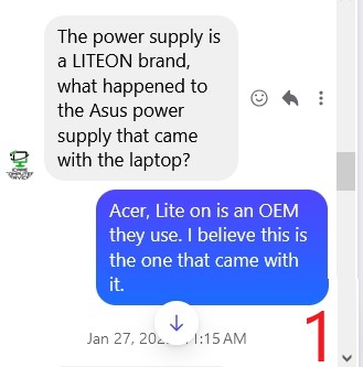 Read moreBrought in an unused, dead Acer Nitro 5 and explained that AFAIK it had shipped with the LiteOn charger I also provided. Inquired after a week about progress and was told the weather had backed them up. Later I was contacted about the "Asus" charger - where was the original? I explained again that LiteOn is an OEM used by Acer. Was told they had to order a new charger to test. After two weeks, I was told it was ready, and that "all the Windows bloatware" had also been removed (not requested - did I pay for this?). It turns on, but...after paying $130, I was sent home with my computer and...the original defective charger. Had I known that, and with an itemized receipt (I included what I did receive below), I would have happily paid for the working charger. Contacted them over a day ago asking at least which brand they used, but no response. I support local businesses over e-tailers like Amazon and big-box stores, and find this experience unusual for our area. (I reached out a final time to let them know this review...