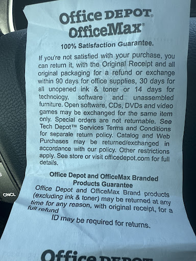 Read moreWarning! Warning! Warning! The Pearland Main St. Store is run by unfit & unprofessional Manager & People in their printing dept. This store cannot provide one day online printing service as offered. You cannot request 1 day printing service and get what you order even if you use the Office Depot online biz card creation software. The Manager at this store was unprofessional & rude. This store doesn't understand printing or color table matching. They cannot match colors created using their online software period. She said they cannot match exact colors as if that was suppose to be acceptable to customers. This store is technically unfit & requires more training. Just because the Manager claimed having been in the printing business for many years, doesn't mean she knew what she was doing or saying. It was not reflected at this store in customer service and quality of printing only excuses to divert customers as acceptable or typical. I advise customers to take your business else where especially if you are a small business and depend on them to provide better service & understanding. America's businesses is made up of millions of small businesses and this company should consider meeting the demands of what drives good business in today's world. As a small business this would put me out of business if I asked my clients to accept this type of behavior and delivery of bad service. Warning! Do not do business with this company and especially this store manager. Hope one day they will understand the depth and errors of their bad customer service and poor product delivery. Praying they don't put anyone in the position as they did me with my clients & my new business. Bad branding for Office Depot...