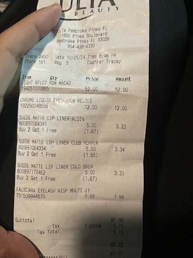 The odd thing is, Ive been to Ulta store at other locations (Dania Beach, Aventura, North Miami, and Davie) and my experiences have been nothing short of amazing. I left this pembroke pines location irritated. Needless to say, I will not be back. Even if the product is only available at THIS location, I will just...