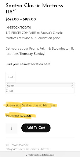 Read moreFirst experience with the 599 king mattress sale was great! There was a warranty issue with it and the process was smooth and easy. Fast forward to 7-10-23 we started at the Peoria store and were looking at the mattresses and were between 2 and they were more money. Me and my wife were talking about it and the lady literally told us " if you spend more than $20 for lunch a day you can afford it" I was very offended. So we left and went to the Pekin store guy started out very helpful and sold us a "new" tempurpedic bed after shelling out over 900 extra dollars for it only to last until now. We now have been fighting with them for over a month to even get an answer I have chronic back problems and this caused me to have to go out and buy a new mattress while they supposedly get their "answer". The "owner" is supposed to reach out to me and hasn't. I wouldn't recommend until they make it right