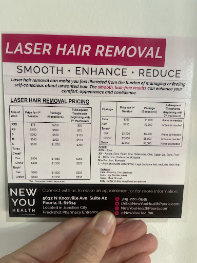 Read moreWhile searching online for laser hair removal, I stumbled across the new you page and I could not be happier! I choose Deb for laser hair removal because of the competitive pricing but would go back again just for her personally. I choose the (armpits, Brazilian, and legs) package and even when we had to stop the legs in the summer deb touched up spots on the others for free once we started back up. While there Deb helped answer in any other questions about skincare and offered free samples to help with concerns.