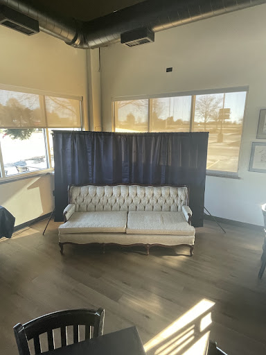 Being a former Italian restaurant, it was wanting for nothing - plenty of tables and seating, a large back room with additional seating, a complete professional kitchen (though we catered in charcuterie and desserts from a local bakery - food photos included for set-up / location reference) and a very long bar space. It was perfect for our needs. The lights were also dimmable to create a more intimate, romantic vibe the night of the reception. We also had room for a large, Victorian sofa with a backdrop and props for silly photos.