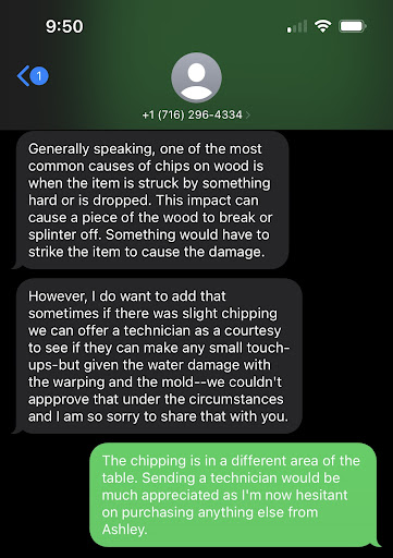 Read moreDO NOT BUY HERE!!!!!!My sister and her husband went in and purchased a full bedroom set⌠bed, dresser, mattress, the works for thousands of dollars. Well today was delivery day. Letâs start with the delivery guys were modern day Cheech and Chong stoners. They brought in the furniture and then looked utterly confused and asked âum did you order a mattress?â When Alli answered yes they said well we have your furniture and not your mattress. She asked them to check and they responded the computer system at Ashleyâs is down. The irony of that statement is THREE WEEKS AGO when they went in to purchase the bedroom set were told the computer systems were down then too and all orders went through one store. How on earth does it take 3 weeks to solve this problem???? It doesnât take NASA computer engineers to solve this, this is a problem easily handled by a first year computer science major. When her husband went in to complain seeing as the customer service line is non existent and no one answers was told a common they had no record of a mattress being ordered. When he stated he was so frustrated he wanted a refund he was told the standard answer âthere are no refundsâ he then demanded a bed, when they finally relented and gave him a temp bed which was substandard to what they purchased they didnât even help him load it into his truck, this is unacceptable. What Ashley furniture doesnât realize is they have a legally binding contract complete with an offer, consideration and acceptance which is in the purchase agreement. That agreement was breached for services not rendered. Now Iâm SURE the generic response will be issued with âgive us an opportunity to fix thisâ followed but the number to text or email. This is unacceptable. A more plausible route I suggested was a chargeback to the merchant for fraud and services not rendered. A compromised can be reached in the form of a HIGH discount. Or a full refund. Please no generic response. Take time to address issues on an...
