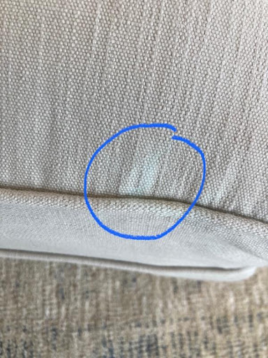 Read moreWeeks within receiving our two chairs and ottoman the fabric color completely bleached out where water, diluted dish soap, and a cleaning fabric came in contact. They tested the fabric and said it was not defective. ALL but one cleaning product was recommended for cleaning by the brand. They blamed the stains on the fabric cleaner and did not acknowledge the stains from water and the diluted dish soap. When Herman’s tried to recreate the stains on their own fabric with our bottle of fabric cleaner they could not recreate the stain, the stain only happened on the defective fabric given to us. We have used this same bottle on many of our furniture fabrics and clothing and it has never left a stain. Herman's resolution was for us to pay for new slip covers at cost, however we do not think it is fair to give Herman’s more money because they gave us defective fabric. It is also not reasonable to purchase new fabric that would likely have the same staining issues. The couch is also frayed along the seam after one wash.