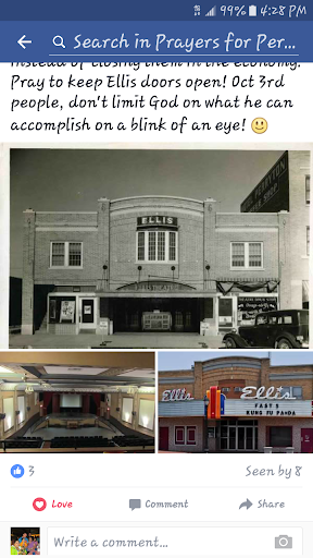 Read moreEllis theater is small and they only have 2 showings at a time, but it is a small town theater. The prices seem a bit steep for the snacks and drinks, but the tickets are a decent price. I enjoyed all my visits here, other than it being either hot, or really cold. I would recommend...