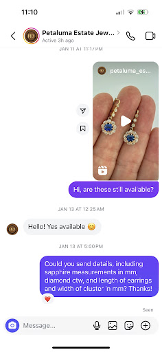 Read moreA rarity when you wish google had more than 5 stars!!!! I have been shopping at Petaluma Estate Jewelry for five years now and have absolutely loved every single purchase I’ve ever made. The shop has a nice vibe and allows you the opportunity to browse, try items on and consider without pressure of making a sale which in my opinion is a better shopping experience vs a chain/retail, supporting small business and better quality, selection, items, and rare items. I personally enjoy a unique piece of jewelry that isn’t mass produced that everyone can buy online and this is my go-to!!