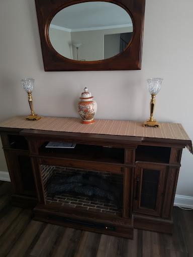 In conclusion I do encourage all of you to stop out to It's New to Me Antiques & shop around, again expect to spend a minimum of 2 hours looking. While I was there I did buy two antique decorative lamps...I attached a few pictures on me placing the lamps on my fire place & lighted up, absolute beautiful, the pics doesn't do justice.