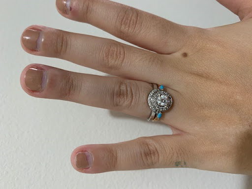 I can't say enough good things about Brenda and her work! My fiance at the time stumbled upon her randomly and she took my vision of updating my mother's old band and love of turquoise and created the most beautiful, unique and well done engagement ring. I couldn't have asked for anything better - the band of the engagement ring is my mother's original gold one and Brenda contrasted with a platinum center and a beautiful diamond design.