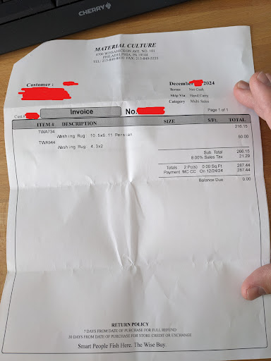 I've been a long time customer of Material Culture, mainly for auction items, but recently acquired some rugs and took them to Material Culture for cleaning given they seem to be one of the highest volume rug dealers in the area and have been doing this for years. I paid hundreds of dollars for heavy cleaning, but unfortunately the rugs came back still embedded with candle wax and moth silks. Jennifer (who has been excellent to work with) was not there when I picked up, but her boss Mehmet was. You can see the issues in the photos I posted, and I voiced these exact concerns to Mehmet and he simply could not have cared less, expecting me to simply pay and leave with rugs that were not properly cleaned. I ended up reaching out to Tribal Loom (who Material Culture uses for their cleaning service) and the owner there was so embarrassed the rugs had gone out the door in the state they were in he immediately asked me to bring the rugs back in for remedial cleaning, resolving the matter in a professional way that I'd hoped would have happened from the get go. So in addition to Mehmet's rudeness, I as a customer had to reach out to their supplier to get matters resolved AND spend my time bringing my rugs back in for remedial cleaning (and pickup) when they should have never gone out the door in that condition to begin with. A serious waste of my time by someone in a manager level position who should know better, but simply didn't give a care. When I dropped the rugs back off, Mehmet didn't seem to know why I was there and struggled to even locate my customer records in their system. Jennifer has been great to work with, and I had the chance to meet the owner George when I did pick up for the remedial cleaning. George seemed interested to hear of the experience I had and responsive to feedback. I still absolutely recommend Material Culture for their auctions, but if you're shopping rugs go in some day when Mehmet...