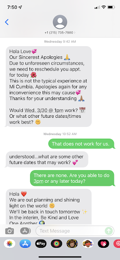 Read moreI have been going to Mi Cumbia for a little over a year now, and it’s the BEST waxing experience I’ve had anywhere in the U.S. Right off the bat, you are greeting by the most loving and welcoming staff. Lucesita will help you with all your booking needs and never fails to have a smile on her face or a little dance in her feet. If you are new to waxing, Karina will talk you through an orientation explaining her technique and how hair growth/waxing works. Never have I EVER had a waxing lady as tedious, efficient, and personable as Karina. She even breaks out the tweezers to get any ingrowns in sight! After my first couple of waxes at Mi Cumbia, I could tell a difference unlike any waxing place— complete and utter SMOOTHNESS. It truly is the perfect wax. Recovery is fast and with her technique you aren’t in much pain during the whole process. Karina is always getting you to chat and distracts you from the waxing— she’s so easy to talk too, that sometimes I forget my bikini line is getting waxed!! I’m sure there’s cheaper places in Philadelphia, but Mi Cumbia is worth every. Dang. Penny. The service is beyond anything else you can get in the city. What I love most about Mi Cumbia, was the friendliness of the staff. They remembered conversations from last visits and always made me feel the utmost comfortable. Getting your first wax or trying a new place out can be really awkward, but I never felt that here. You are in good hands. I tell everyone I know they need to cancel their next wax appointment and book with...