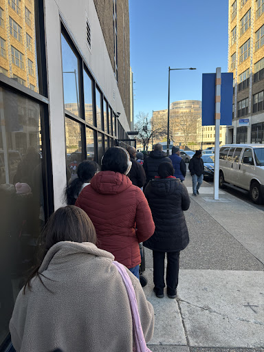 I was in line for 2 hours. There was a man that came out periodically to take names and ask if you had the right documents on you so at least you don't waste your time in line just to find out you can't do what you need in there. It was cold but not terrible. Most people did not understand social distancing in line and ignored the green spray paint marks to denote 6 feet apart. Some wore their masks improperly under their nose.