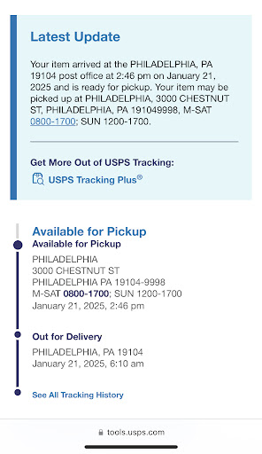 Read moreAlthough it took more than six visits to the post office and numerous calls, they were finally able to find my package after two weeks of desperate calling and searching. The tracking said it was delivered a month ago but in reality, it was never delivered and was held at the post office. We didn’t know until too late (3 weeks later) so when we went to the post office, the item had been returned to sender. However, the item then came back to Philadelphia a week later (the return sticker was not put on it but the carrier had written ANK). We only knew because the internal usps tracking showed the later scans (only available at the post office or speaking with a supervisor on the customer service line). The scans showed it was stuck in the Philly distribution center but it had actually been taken to a supervisor at the post office and was sitting on their desk for three days (scans did not update to post office). Don’t give up hope! The Philly usps consumer affairs number doesn’t work and goes straight to a full voicemail box. Thank you to the postal workers for being patient and still trying their best to find my item! Thank you to Gene for being the most patient even if he couldn’t magically find my package. Thank you to Lisa the supervisor for being the one who saved my new year!...