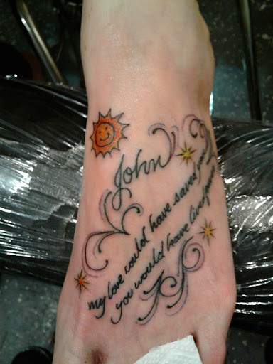 Read moreI had the pleasure of sitting in Danny's chair today. He fixed two tattoos I had done by someone else which were of my granddaughter's names and birth dates. He also added my third granddaughter's name and a portrait of my middle granddaughter who passed away in 2016. I can't begin to explain to you what an amazing job he did in fixing my two granddaughter's names his work is amazing. And the portrait of my granddaughter is so lifelike every time I look at it it brings a tears to my eyes. I cannot wait to go back and have a memorial tattoo done of my parents I plan to do this within the next couple months. If you or anyone you know are thinking about getting any work done I would go to Danny you will not be...