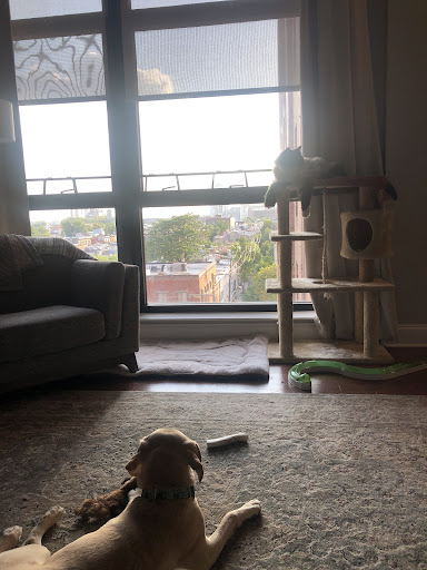 The apartment has tall ceilings and large windows to allow for ample natural light. The location seems pretty wonderful. My job is right next to the Children’s Hospital of Pennsylvania (CHOP) and it is only a 25 minute walk or an 8 minute bike ride to work - plus the bus stop is right in front of the building and there is an Indego bike rental rack next door. I have been walking my dog every morning down to the Schuylkill River dog park which is only about a 10-15 minute walk from here and he has loved making friends there. At the dog park they have separate areas for large and smaller dogs so he can run off leash with dogs of a similar size.