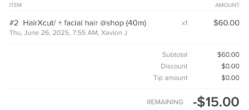 My son and I went in to get a haircut. Waited patiently for an hour and a half 5 barbers, 5 men waiting . I didn't mind waiting because these haircuts are damn good. Music is absolute trash though lol anyways I am upset because this chick is silver hair who had an appointment apparently, came off break did my son's cut in 15 minutes and I was a thinking i was next went up to get a cut. She says she is not gonna take me because she has an appointment although the place was pretty busy and she was on break for like a damn hour. So i planned on waiting for another barber to open. She said his 15 minute haircut was $20. I should not gave paid her $20 nor tipped her the $5. I sat there and left this barbershop without a haircut and I won't lie in super disappointed in these guys. I won't be back. I'll save the money and go elsewhere. Tons of great shops where I won't wait 2 hours to Pay $50 for a 10-20 minute cut for...