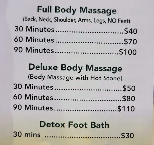 Read moreI have been there twice now, first time i came with my mother and second time with my husband. The first time was okay service, at the front desk, there was a young Caucasian girl who was very nice and spoke English and was able to explain their services. We did not know what to expect in regards to the massage but had an okay experience, but the second time, i knew what i wanted in my massage. The front desk person was very short and to the point. He did greet us when we walked in. we had 60 minute reflexology that included massage for whole body, mainly focusing on feet. We told the guy that we wanted medium pressure for back and hard for the feet massage, which he said he will let the employees know. Two ladies greeted us and took us to the couples room. One' s name was May and i cannot remember the name of the other lady. we had to tell the ladies again for more pressure on the feet, on the upper back it was exactly what we wanted. my husband felt like all she did was continue to scratch his back and buttocks than the massage. the problem we had with our time here is that both ladies continue to talk and giggle among each other while we are in our underwear with towel over us and a towel over our eyes. I think this was very unprofessional. At one point, i uncovered the towel over my eyes, just to ask them if everything okay? They replied by saying- you like it? It is hard to relax when there are whispers and giggles going on through the entire session. At one point, I felt my massage lady pointing out my hand to show the ring to the other lady while my eyes are covered, which would have not been a big deal, if she wanted to compliment the ring instead of showing jewelry to each other. Their prices are no doubt bad but their services are very poor. In my opinion, it was nowhere near relaxing for us. I regret spending 70 dollars and tips. I will not be going there again....