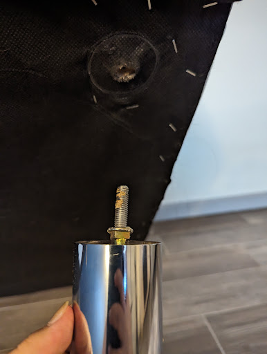 I went to the store the next day and was assisted with fixing the current parts I had, rather than swapping out the parts entirely. The rep who helped me [I forget his name; maybe Ron] took the two parts to the back of the store after struggling to screw one of the screws in with the provided Allen wrench [the same struggle that I had by myself]. When he returned, the two parts were screwed together and I asked how he did it. He confirmed that he had to use a "little force" with a power tool to get the screw started and then he used the Allen wrench to finish tightening them down. I asked why he would have to use a little force considering all the other screws did not require that same force. He said he has put several of those TV stands together and that I would have no problem putting mine together if I did it a specific way.