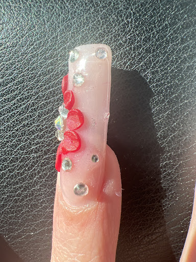 Read moreEverything was OK til I was sat down. The lady was sweet til she also wasn't. she had asked what I wanted and I told her red French tips acrylic nails and a little Diamond on the ring finger. it was okay, going fine but she didn't even let me pick the size she said in the picture it's long and just kept going and as someone who went there before I've seen this as disrespectful because they always would take in ur consideration. anyways she starts buffing them she was really rough and took more than 2 hours with setting the acrylic powder. Some nails are uneven and too thin and thick. The nail paint wasn't even it was really sloppy and even the acrylic power she had placed on my nail didn't match my skin tone wayy too pink. it felt she wasn't trying and it was more of a chore to her. and it made the vibes off and honestly when I got home it was so bad I didn't even wanna try and get them fixed by someone else so I tried fixing it my own damn self. it was jus too bad I had to just cut them off n get them removed the next day. it's was 85 dollars. honestly wouldn't come back here, im more upset over the time i wasted than the whole overall and money . Time is something no one could ever get back. don't come here if u actually want ur nails to look good asf but if u do want the cheap looking press ons, this place is...