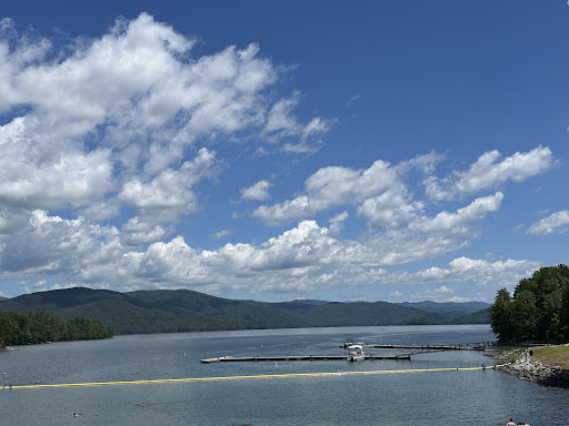 Clear crystal clear waters. A place to fish, swim, and see the mountains. When I say clear I mean you can see straight to the bottm. It is amazing out there. A must see anytime of the year. Very very peaceful surrounding. May even see geese. Also great for kids and adults. Public restrooms. Parking is not free but worth the drive...