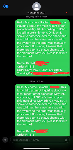 I honestly don’t have any hope of receiving this order nor from hearing back from this business. I already did my part and did more than what I should have in reaching out. This whole thing is giving fraud and scam.