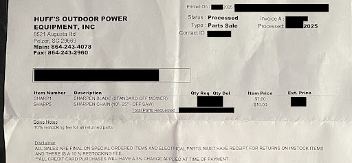 Read moreSeveral years ago I purchased a brand new Toro Timecutter zero turn mower from Huff's power equipment. It worked well for a while but after about 2.5 years it started having issues. After taking it to a couple places I was informed that the "hydrostatic transmission" had gone bad and decided to call Huff's to see what my options were (the mower was barely past its warranty). I was told by a man that worked there that this particular mower was basically a POS and I should have never bought it. To make a long story short he informed me I could spend around $1500-$2000 to fix it but once I do that the other side would most likely go bad as well. He then told me I should just take a loss and buy a new mower from them. My 2 star review is due to the fact that based on the anonymous conversation I had with the man working there, the owner knowingly sold me a garbage mower. I trusted them to give me good advice as I was spending a lot of money to support their business but in the end I am stuck with a mower that won't run for more than 15 minutes at a time. They are friendly, knowledgeable, and prompt but they are lacking in the honesty department, I definitely would not make a large...